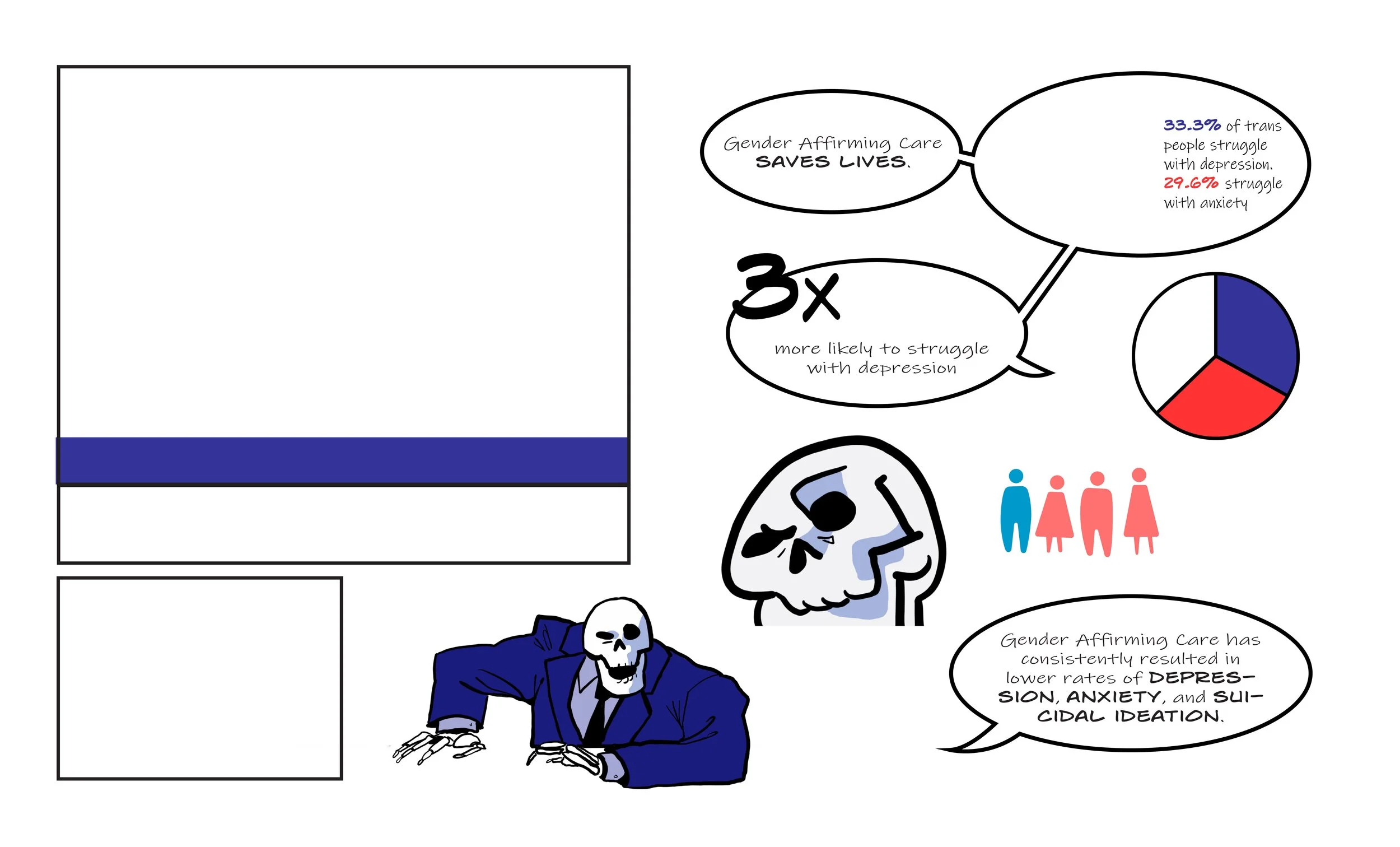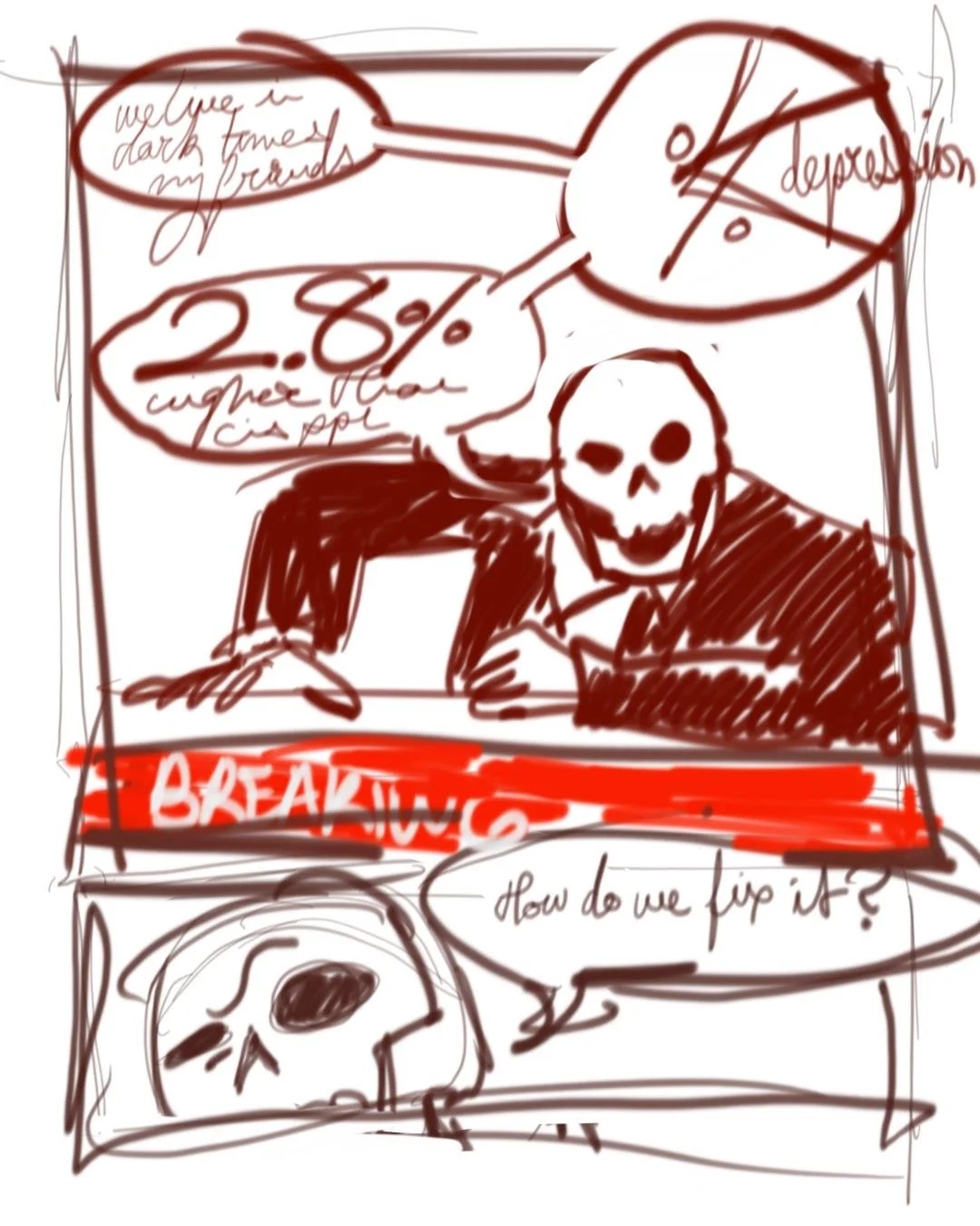 Transgender healthcare is under attack in the United States. For this project, I created an infographic about what kinds of healthcare is available in the U.S., its benefits, and the restrictions placed on it. I chose a skeleton as my narrator because I wanted something gender-neutral (as well as to poke fun of transphobes who use skeletal structure to demean trans people). The infographic is divided into six sections, each arranged like a comic book page. In this project I became more comfortable with my digital illustration skills, practiced different forms of data visualization, and experimented with creating a narrative across a longer project. This infographic was created to be posted to Instagram panel-by-panel to educate people on the state of transgender healthcare.